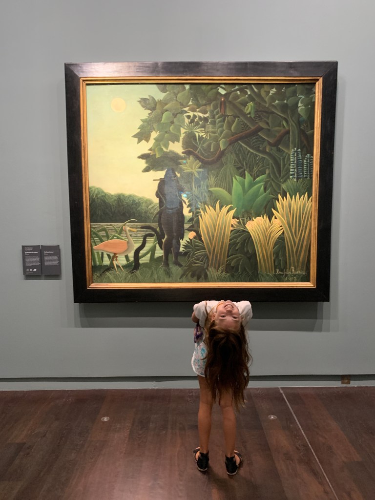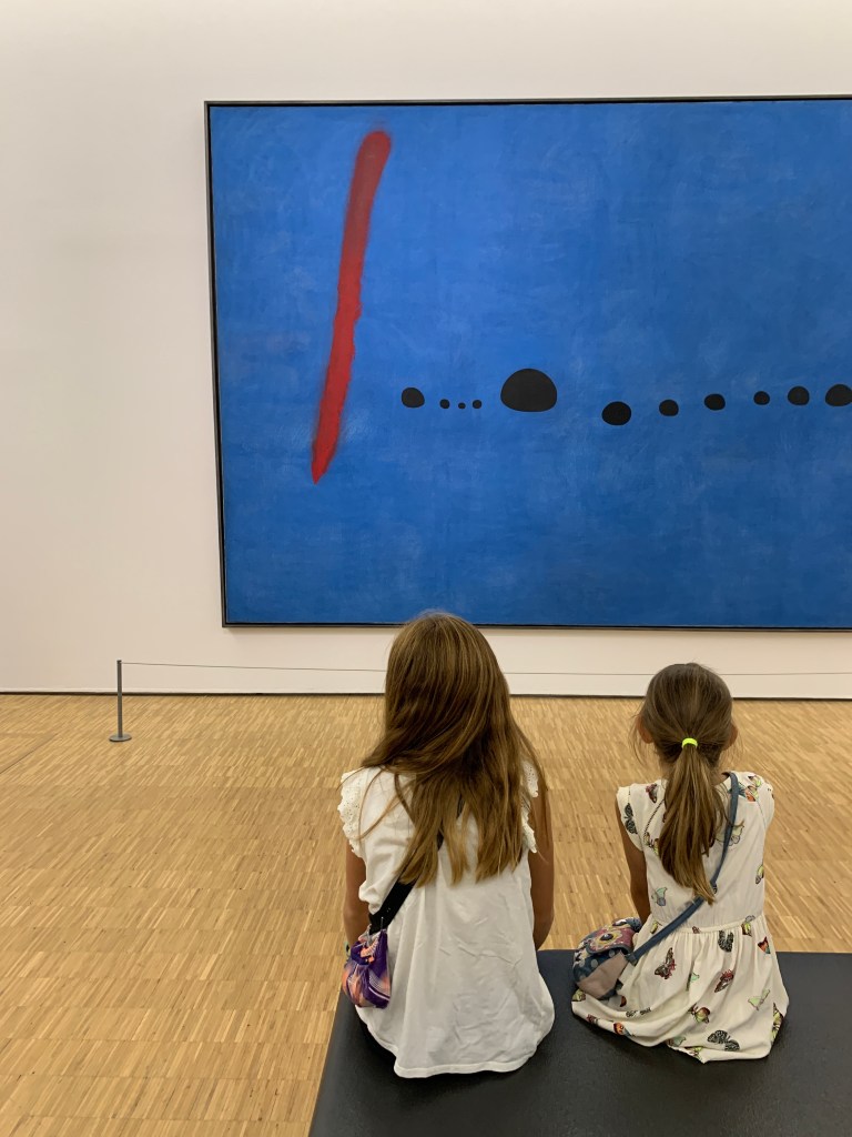 Our last foray in Paris’ art scene was to pay visit to the Centre George Pompidou, Paris’ home to Europe’s largest collection of modern and contemporary art. Built in 1971 and opened in 1977, the center boasts a funky architectural style, essentially exposing the guts of its mechanical interior on its facades. Massive and color coded are its ventilation and circulation pipes which run on the exterior and distinguish the building from more mainstream Parisian construction styles. Inside, the center was replete with art spanning various genres, time periods and masters. From Matisse to Warhol, Kandinsky and Brancuși, myriads of works are there to be savored and inspire the hundreds of thousands who visit annually. The art itself in some parts was reminiscent of stuff you’d see at the MOMA in New York City, the Dia Upstate NY or at the Mass MOCCA in Massachusetts, if I were to draw any parallels. The girls found the interactive installations to be most fun, and were awed by the some of the other pieces which stretched their levels of interpretation.