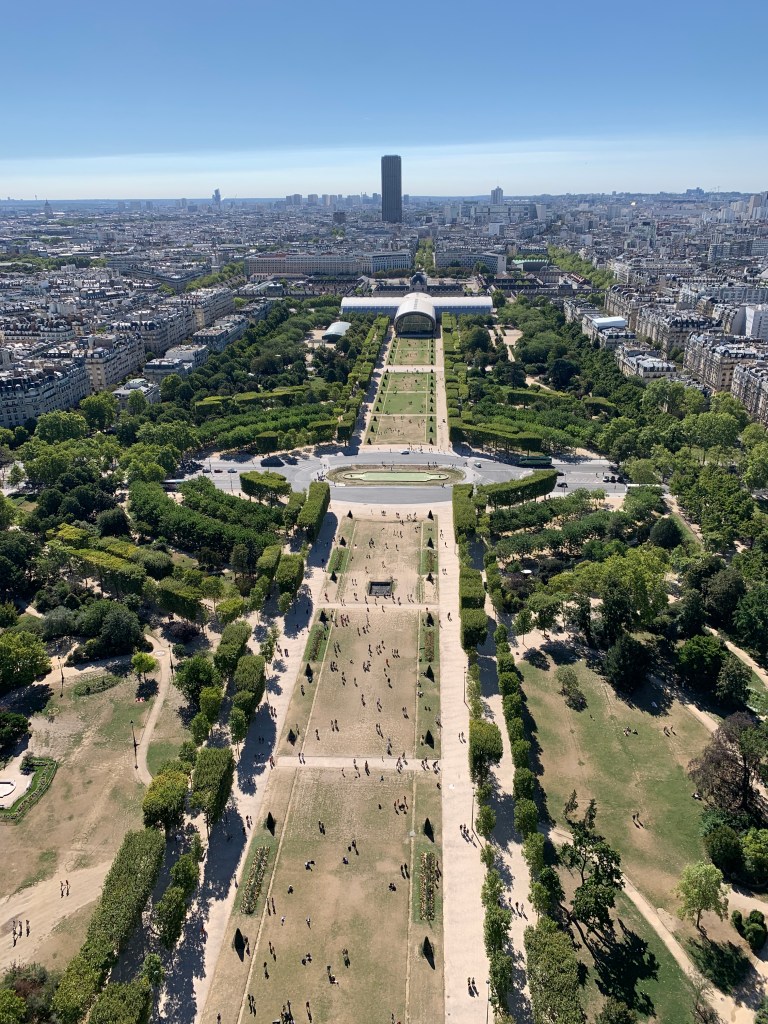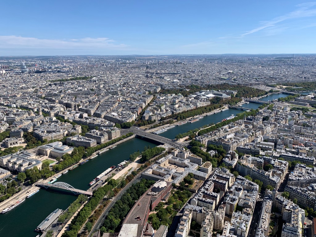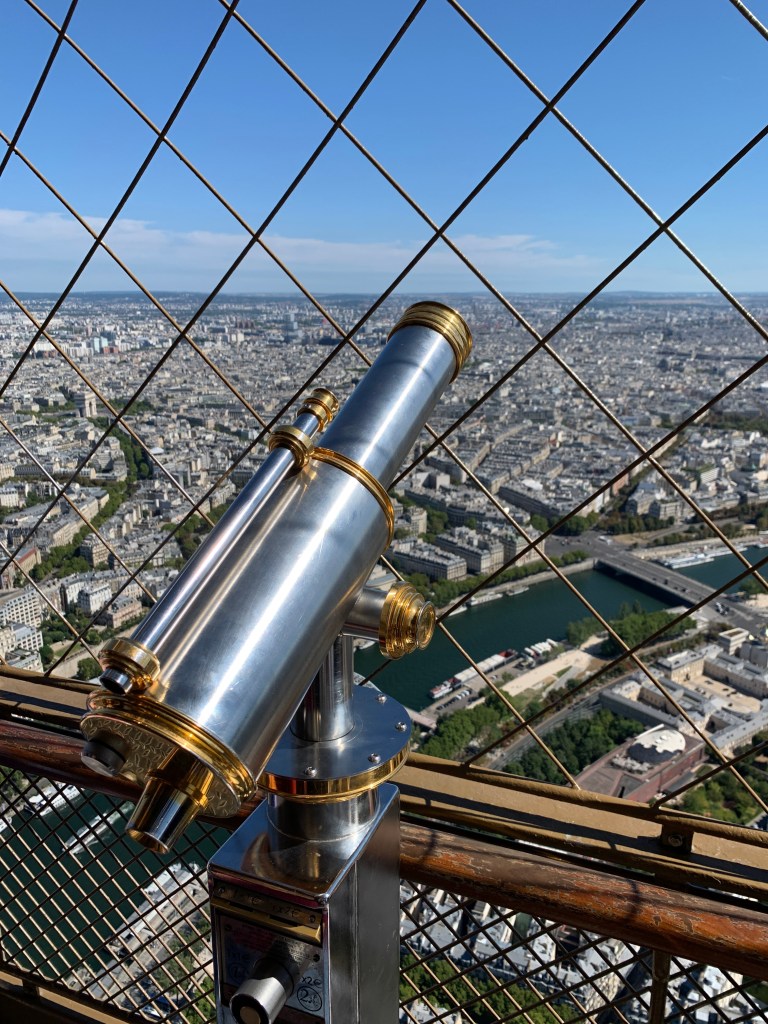 Museums galore is just one of Paris’ faces, there are over 130 in total. Perhaps an adventure dubbed Our Parisian Year would afford us the opportunity to visit most (some food for thought). Another big, in fact biggest (literally and figuratively), touristic highlight and most visited, is La Tour Eiffel (or the Eiffel Tower). Standing at 1,083 feet since it’s opening in 1889, the tower is Paris’ most defining landmark and offers unobstructed views of the city at 360-degrees. Online tickets were sold out but as it turned out, it paid to go and wait on line for our chance to take a ride up to the top. The earlier you can get there when the tower opens, the better as lines can get quite long. Less than an hour later with tickets in hand, we mounted to the top (utilizing two elevator systems), and some patience along the way, blending into the myriads of tourists doing the same exact thing. The zenith was worth it for the views, for the gentle silent breeze and memories of Rusty Griswold having lost his beret from that very platform. As cliché as it were, we saw dozens of berets capping many heads, which prompted the memory of the film.